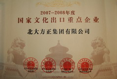 方正榮獲“2007-2008年度國家文化出口重點(diǎn)企業(yè)”